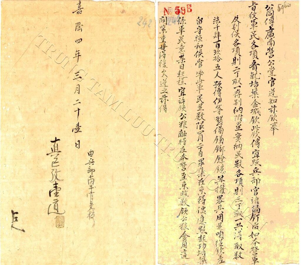 | Une archive sur l'envoi de miliciens pour construire la citadelle impériale en 1805. |