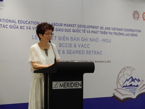 | Teresa Wat, ministre du Commerce international de Colombie britannique, lors de la cérémonie de signature de mémorandum, le 9 novembre à Hô Chi Minh-Ville. |