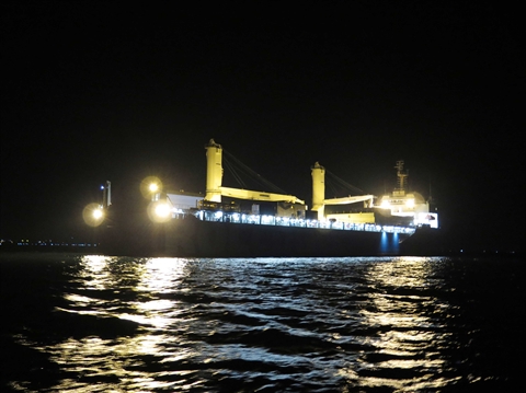 | Le navire-grue hollandais Rolldock Sea au port de Cam Ranh, dans la province de Khanh Hoà (Centre), le soir du 2 février. |