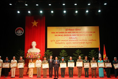 | Cérémonie de remise des ordres et médailles du Laos aux 358 cadres, experts et soldats volontaires natifs de la province de Hà Tinh. |