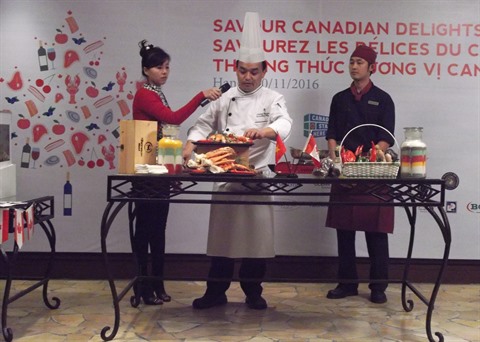 | Des produits halieutiques canadiens des côtes Atlantique et Pacifique présentés lors de l’événement «Savourez les délices du Canada», le 10 novembre à l’hôtel Sheraton, à Hanoï. |