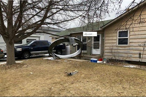 | Une photo fournie par la police de Broomfield (Colorado) montre un débris de grande taille tombé d'un Bœing 777 sur cette banlieue résidentielle de Denver le 20 février. |