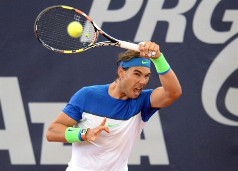 | Rafael Nadal retourne une balle durant son macht face à son compatriote Fernando Verdasco au tournoi de Hambourg, le 28 juillet. |