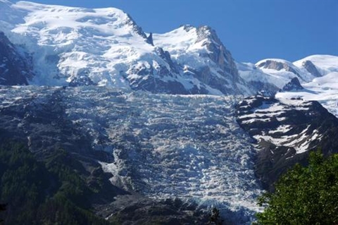 | Vue depuis Chamonix des Alpes françaises dont le Mont-Blanc, le 3 juin |