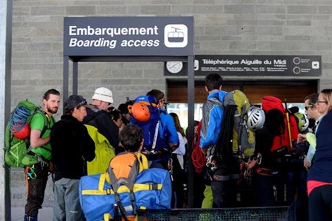 | Des alpinistes s'apprêtent à escalader le Mont-Blanc le 3 juin, dans le cadre du 150e anniversaire de la conquête de nombreux sommets des Alpes françaises. |