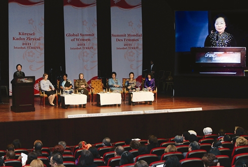 | La vice-présidente de la République Nguyên Thi Doan (au micro) au Sommet mondial des femmes organisé en mai 2011 en Turquie. |