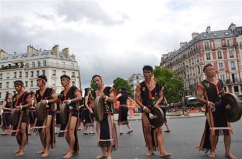 | Une représentation de la troupe d’artistes du gong de la province vietnamienne de Kon Tum (hauts plateaux du Centre) au Carnaval tropical de Paris |