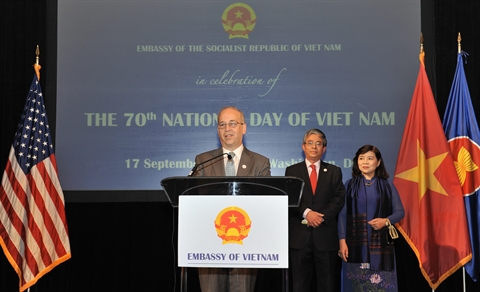 | L’assistant du secrétaire d’État américain, Daniel Russel, prend la parole à la cérémonie de célébration de la 70e fête nationale du Vietnam (2 septembre), le 17 septembre à Washington |