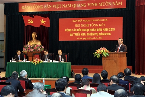 Selon Lê Hông Anh, permanent du secrétariat du CC du PCV, en 2016, la diplomatie populaire du Vietnam devrait s’attacher à accélérer l’intégration internationale, à améliorer l’efficacité de ses activités et à consolider l’amitié avec les autres pays, notamment avec les pays voisins et les pays membres de l’ASEAN. Il faudra renforcer aussi la collaboration entre les collectifs et les organisations populaires vietnamiens, entre la diplomatie populaire et celle du Parti et de l’État, a souligné Lê Hông Anh.
