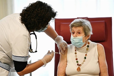 | Vaccination d'une pensionnaire d'un EHPAD de Bobigny, le 30 décembre 2020. |