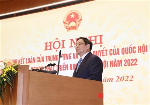 Le Premier ministre Pham Minh Chinh a souligné dix points positifs de 2021, notamment le contrôle de la pandémie de COVID-19, l’accélération de la diplomatie vaccinale et de la vaccination, la modification de la stratégie de prévention et de lutte contre le COVID-19, le rétablissement de la croissance du PIB au quatrième trimestre, la stabilité macroéconomique et le contrôle de l'inflation.