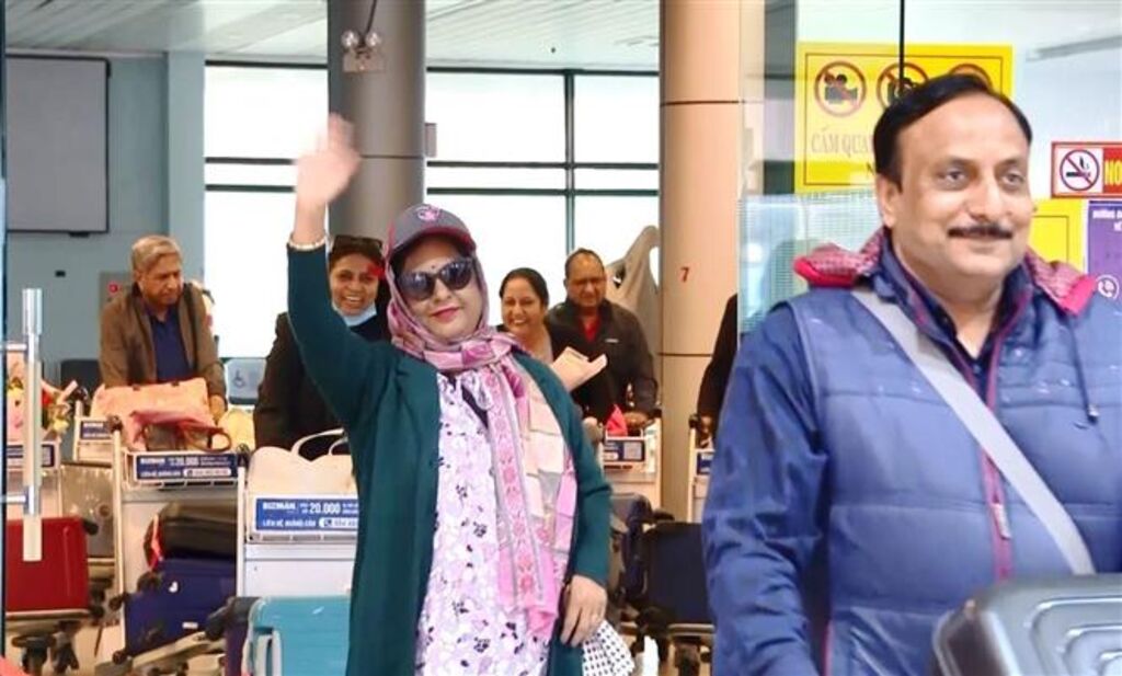 | Des touristes étrangères à l'aéroport de Dông Hoi, province de Quang Binh (Centre), le 1er janvier. |