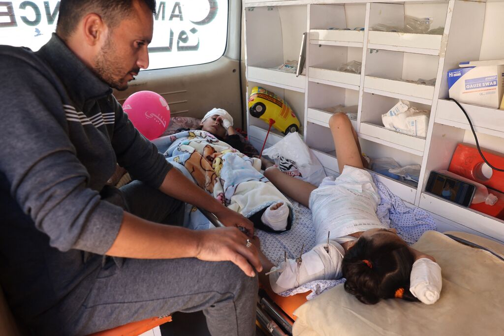 | Deux enfants blessés dans la bande de Gaza sont transportés vers l'hôpital égyptien. |