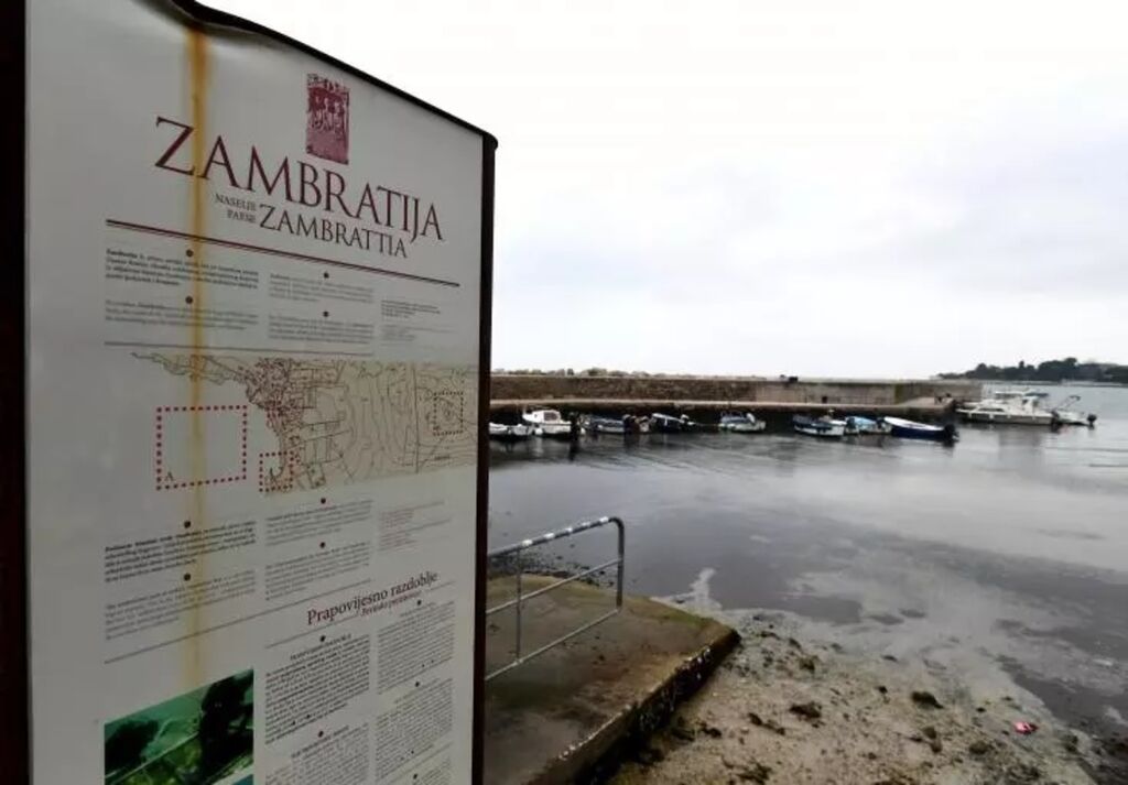 | La baie de Zambratija, où un bateau cousu main vieux de 3.000 ans a été découvert, le 11 décembre 2023 sur la côte nord-ouest de la péninsule d'Istrie, en Croatie. |