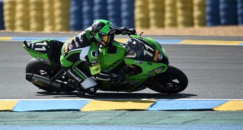 | Le pilote français Randy de Puniet sur la Kawasaki ZX10R Formula EWC N°11 lors des 24 Heures du Mans le 21 avril. |