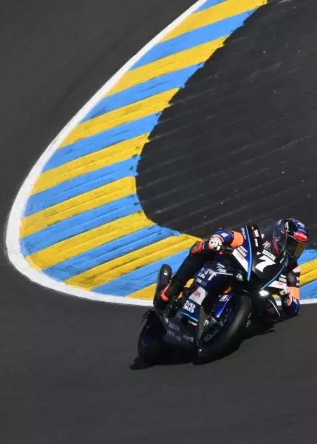 | Le pilote allemand Marvin Fritz (Yart) sur sa Yamaha N°7 lors des qualifications des 24 Heures motos au Mans, le 18 avril. |