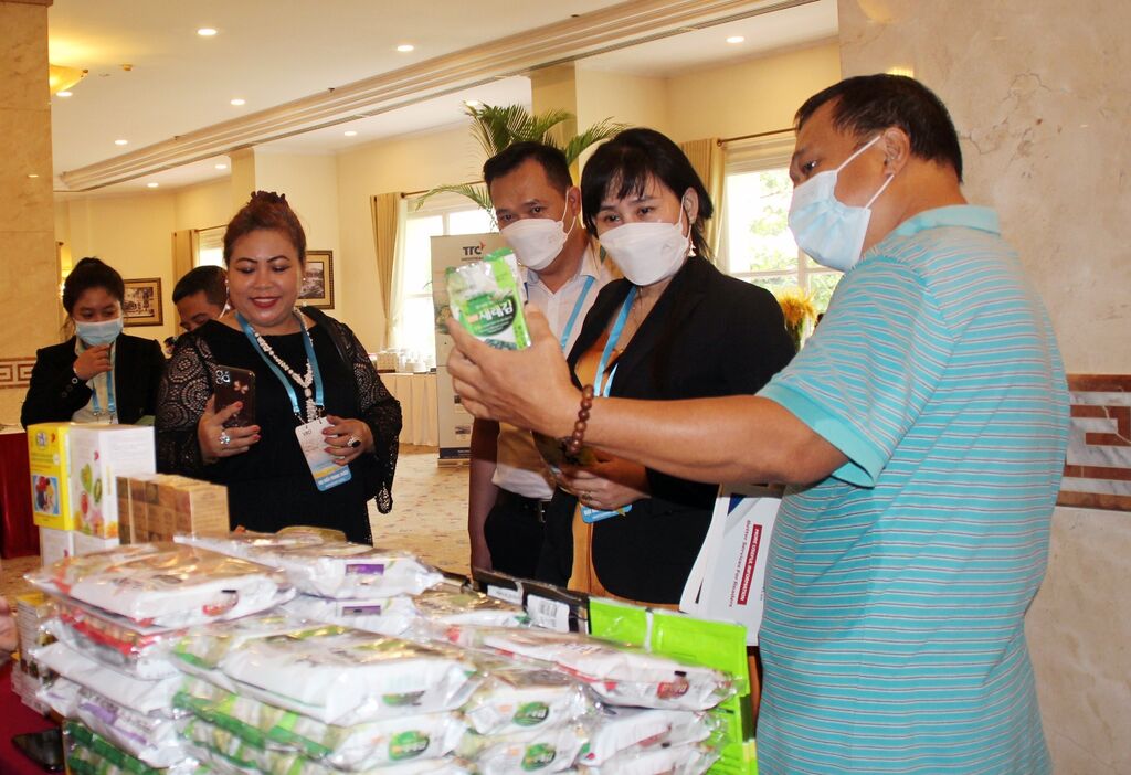 | Stand de produits vietnamiens exposés en marge de la première Mission économique et commerciale de la Francophonie (MECA) tenue en mars 2022 à Hô Chi Minh-Ville. |