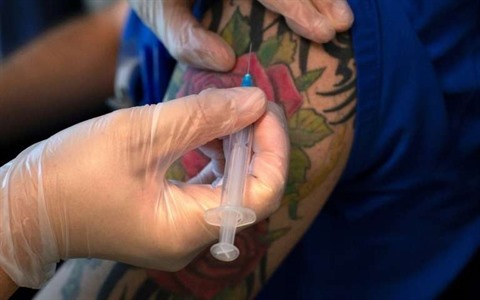 | Un professionnel de santé reçoit le vaccin contre le COVID-19 à Santiago du Chili, le 24 décembre. |