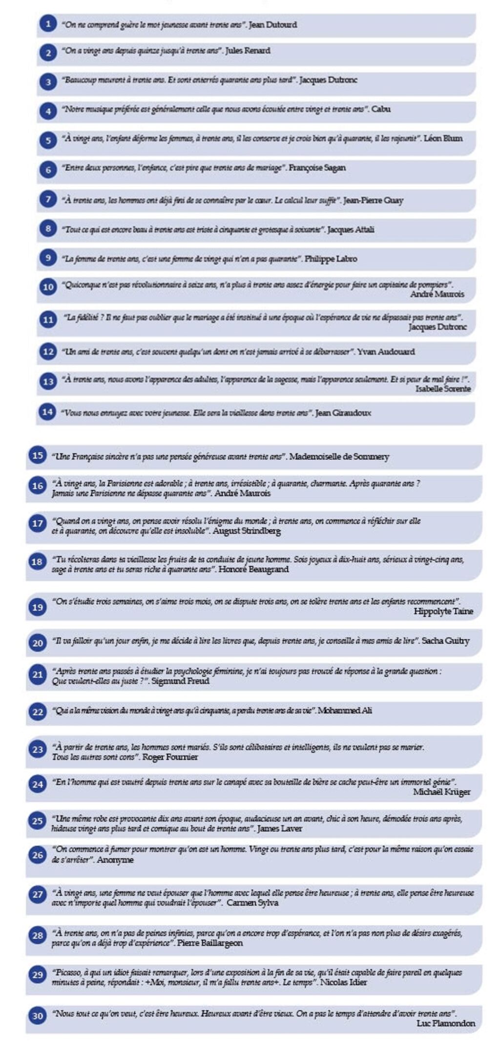 Pour un journal, atteindre le cap des trente ans est une réalisation remarquable et une source d’inspiration pour de nombreuses personnalités. Voici une sélection de citations contenant l’expression “trente ans”, invitant à la réflexion. Joyeux anniversaire, cher Le Courrier du Vietnam !