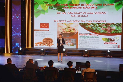 | Nguyên Thi Thu Phuong, 26 ans, a remporté le 1er prix du Concours du star-up dans la province de Dak Lak en 2018 avec le projet ''Production et commerce du noix de macadamia''. |