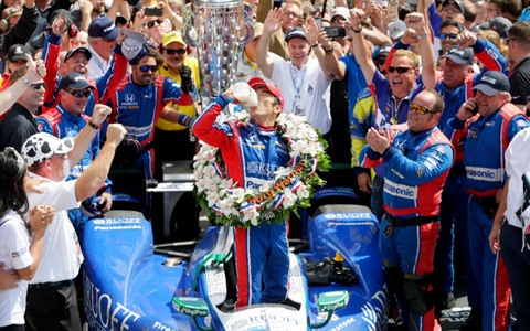 | Le Japonais Takuma Sato, vainqueur des 500 miles d'Indianapolis, le 28 mai. |