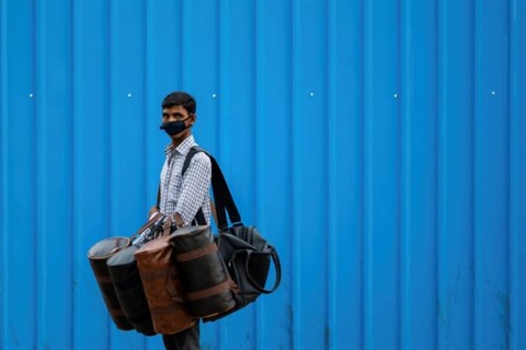 | Un vendeur de sacs dans les rues de New Delhi (Inde) le 7 septembre. |