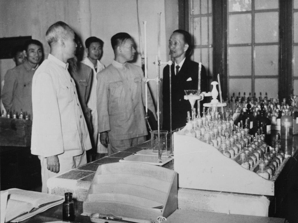 | Le Président Hô Chi Minh visite un laboratoire de l’Université de médecine et de pharmacie de Hanoï, le 14 janvier 1963. |