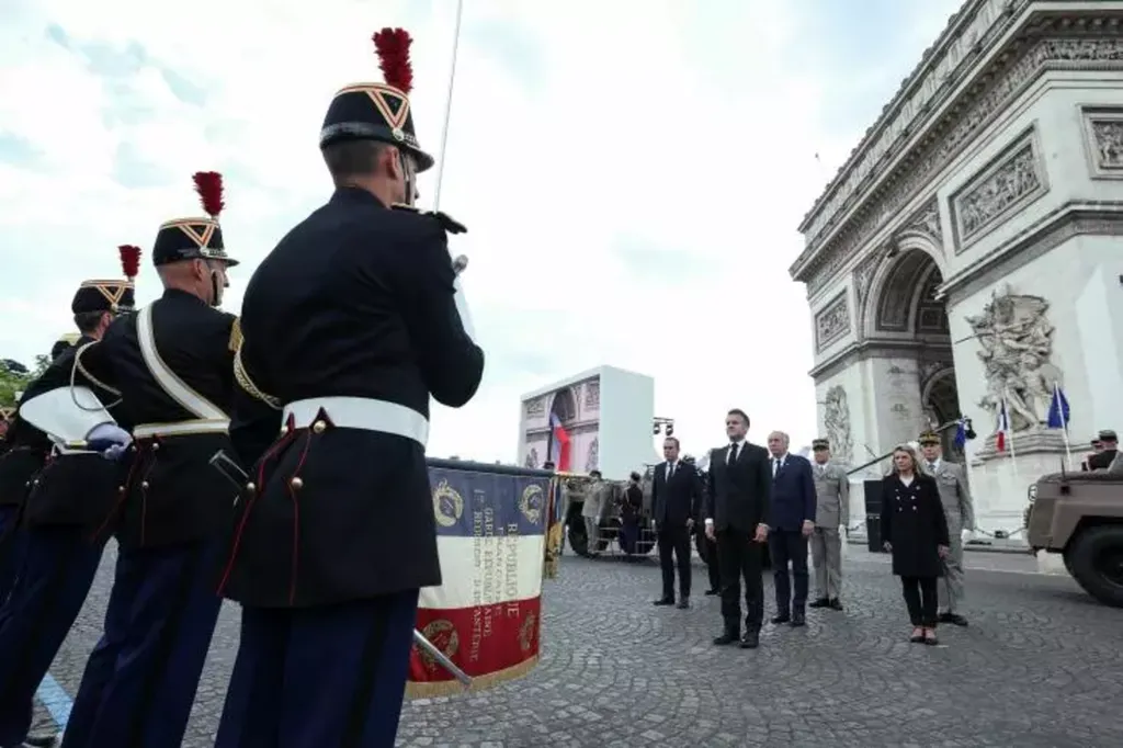 Durant la cérémonie, pour laquelle était invité le président équatorien Daniel Noboa, Emmanuel Macron a remis les insignes de chevalier de la Légion d’honneur à Jean Daikhowski, une figure de la Résistance qui a notamment participé à la Libération de Paris, après avoir échappé à la rafle du Vel d'Hiv en 1942.