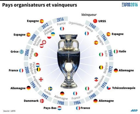 | Euro-2016 : anciens organisateurs et vainqueurs. |