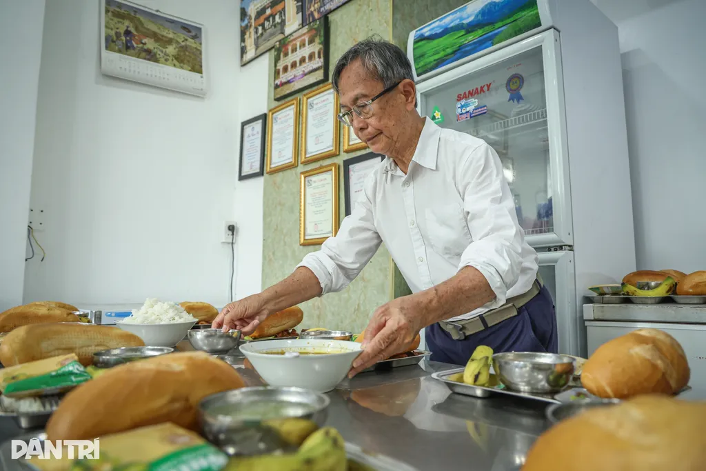 Les clients venant pour la première fois le prennent souvent pour le propriétaire du restaurant ou pour un gentil gardien âgé. Mais ceux qui sont habitués l'appellent par un nom plein de respect : "Thầy Thạch" (Professeur Thach). Il s'agit du Professeur-Docteur Lê Ngọc Thach (77 ans), l'un des éminents professeurs de chimie organique, ancien enseignant de la faculté de chimie de l'Université des sciences naturelles (relevant de l'Université nationale de Hô Chi Minh-Ville), qui s'est engagé auprès du restaurant social “Mây Ngàn 1” depuis plus d'une décennie. Non seulement il vient pour la forme, mais trois fois par semaine, il est présent tôt avant l'ouverture, les manches retroussées, travaillant en cuisine avec les autres bénévoles comme un serveur à part entière.