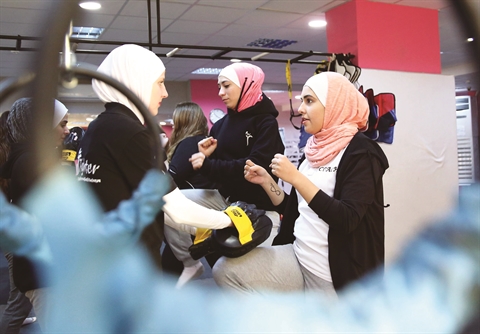 Gants de boxe aux poings, cheveux attachés ou dissimulés sous un voile, une vingtaine de jeunes filles en position de combat suivent attentivement les instructions du «coach» Lina Khalifeh, qui a ouvert la première salle d’arts martiaux pour femmes en Jordanie.