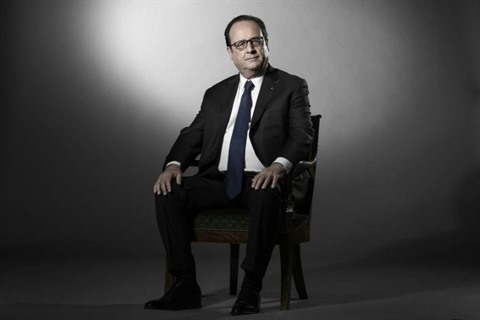 | François Hollande, alors président de la République, pose à l'Élysée, le 11 mai 2017. |