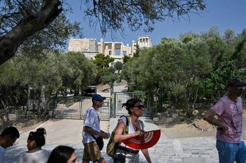 Le mercure frôle déjà les 40oC lundi midi 2 août quand les derniers visiteurs s'engouffrent derrière les grilles de l’Acropole, avant la fermeture des portes.