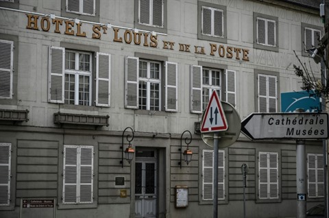 | La façade de l'hôtel Saint-Louis à Autun, où se trouve la "chambre Napoléon", le 15 février 2021. |