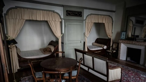 En 1997, les couchages enchâssés dans une alcôve, avec deux tables de nuit coiffées d'un marbre noir, une commode et une coiffeuse d'une manufacture exceptionnelle, avaient été estimés à environ 20.000 euros.