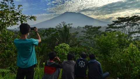 Le volcan Agung, situé à quelque 75 kilomètres de la ville touristique de Kuta, gronde depuis le mois d'août. Les autorités recommandent de rester à plus de neuf kilomètres du cratère.