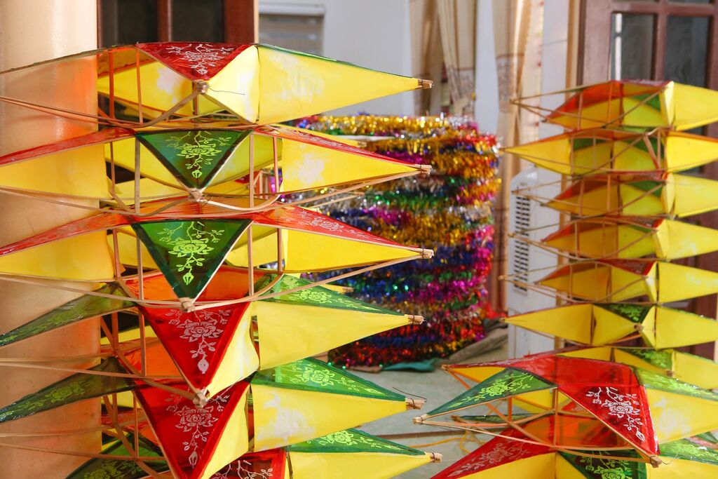 La fabrication d’une lanterne étoilée est un travail de précision, qui exige patience, dextérité et sens esthétique. L’artisan commence par définir les dimensions, avant d’assembler l’armature en bambou, de teindre le papier translucide, de découper les branches de l’étoile puis de les orner. Le papier est ensuite appliqué avec soin pour épouser parfaitement la structure. Des franges colorées viennent rehausser l’ensemble, tandis qu’une fine baguette de bambou maintient la surface tendue jusqu’au séchage. Selon Ninh Thi Luot, il faut plus de soixante gestes minutieux pour réaliser une seule lanterne.