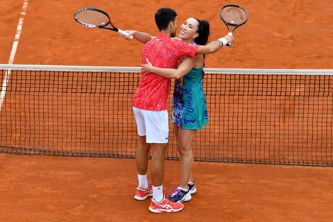 L'ancienne N°1 mondiale serbe Jelena Jankovic a elle aussi pris part à la fête. Sortie d'une retraite de plus de deux ans qui n'a jamais été officialisée, elle a disputé, sous les ovations du public, un double mixte associée à Djokovic.