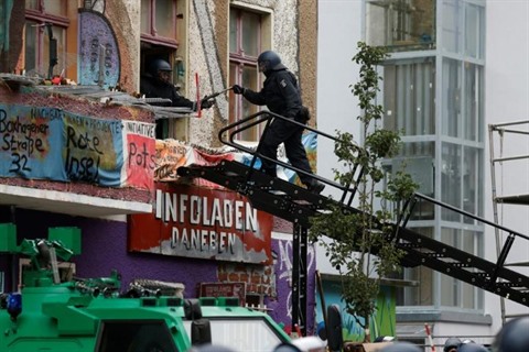 | La police allemande évacue un immeuble squatté "Liebig 34" dans la banlieue est de Berlin, le 9 octobre. |
