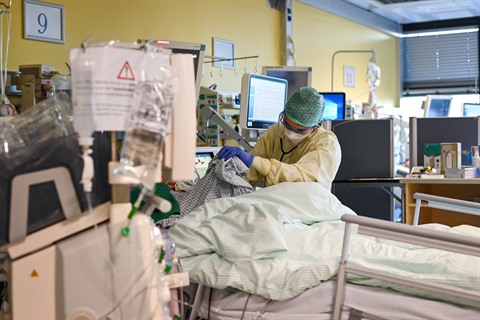 | Traitement d'un patient du COVID-19 dans un hôpital à l'Ouest de l'Allemagne, le 10 novembre. |