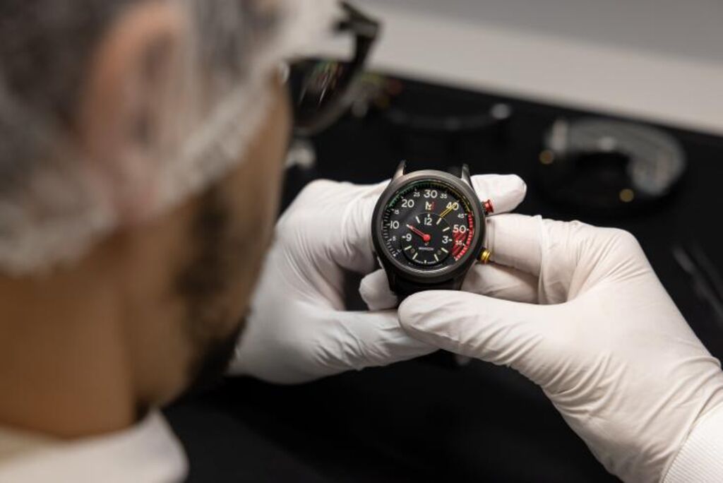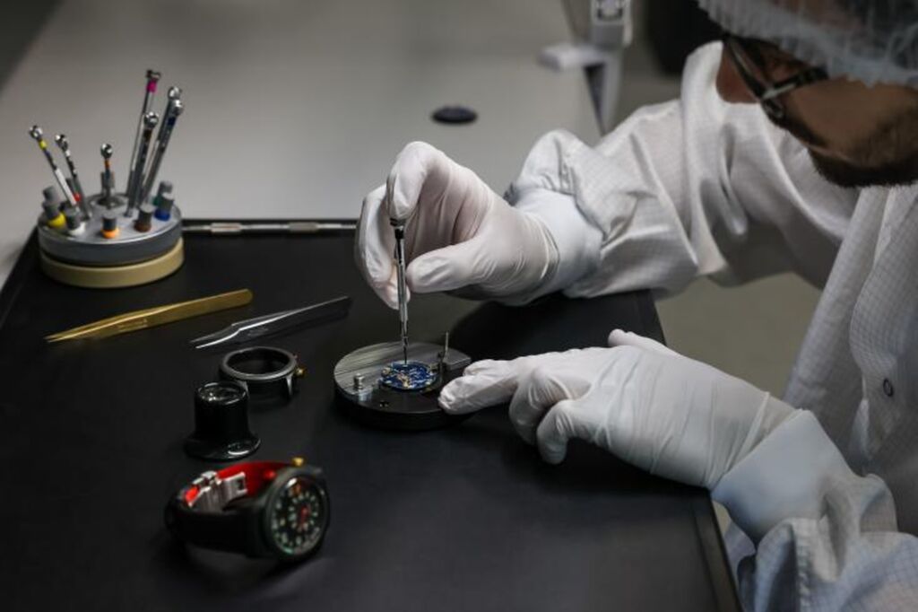 | Un opérateur de SilMach manipule une montre Thetimechanger, le 6 octobre à Besançon. |