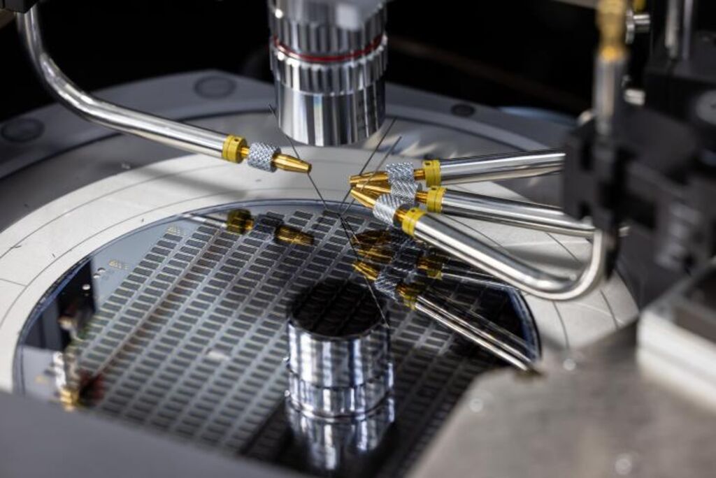 | Un robot teste le cœur au silicium utilisé dans la montre Thetimechanger fabriquée par l'entreprise SilMach, le 6 octobre à Besançon. |