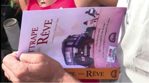 | Capture d'image d'une vidéo de l'AFPTV montrant le livre écrit par Candelaria et Herman Zapp. |