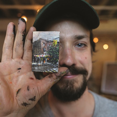 Quasiment chaque fin de semaine, il publie sur son compte Instagram une photo d’un tableau minuscule, devant le lieu - toujours à Greenpoint - qui l’a inspiré.