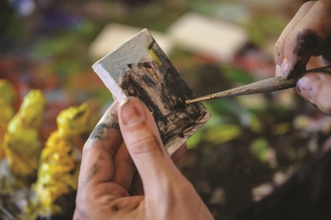 | Steve Wasterval peint un tableau miniature dans son atelier du quartier de Greenpoint, à New York. |