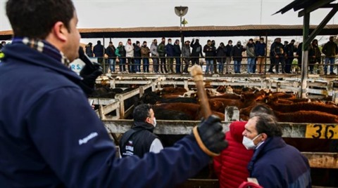 | Vente aux enchères de bétail au marché de Liniers de Buenos Aires, le 1er juillet en Argentine. |