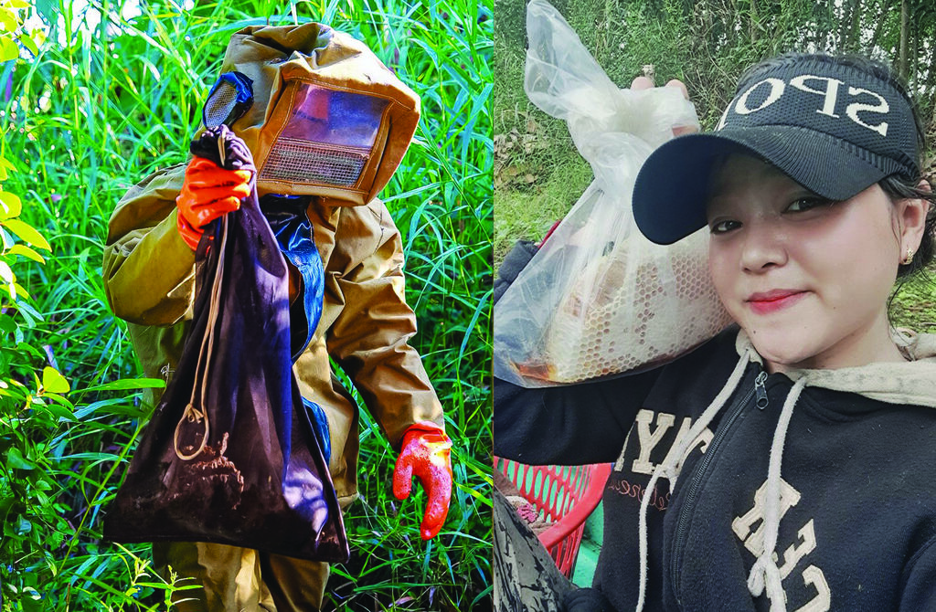 | Quách Kim Y lors d’une chasse aux ruches de guêpes. |