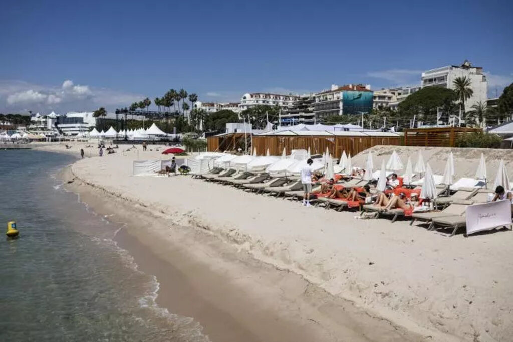 | Bain de soleil sur la plage à la veille du 77e Festival de Cannes, le 13 mai. |