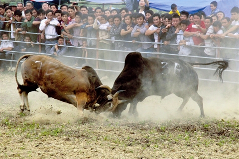 | Les combats de zébus à Cao Bang attirent un public en mal de sensations fortes. |