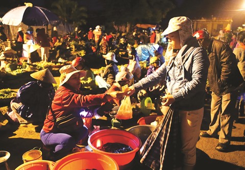 | Le marché «Âm Duong» démarre dès minuit pour se terminer aux premières lueurs du jour. |
